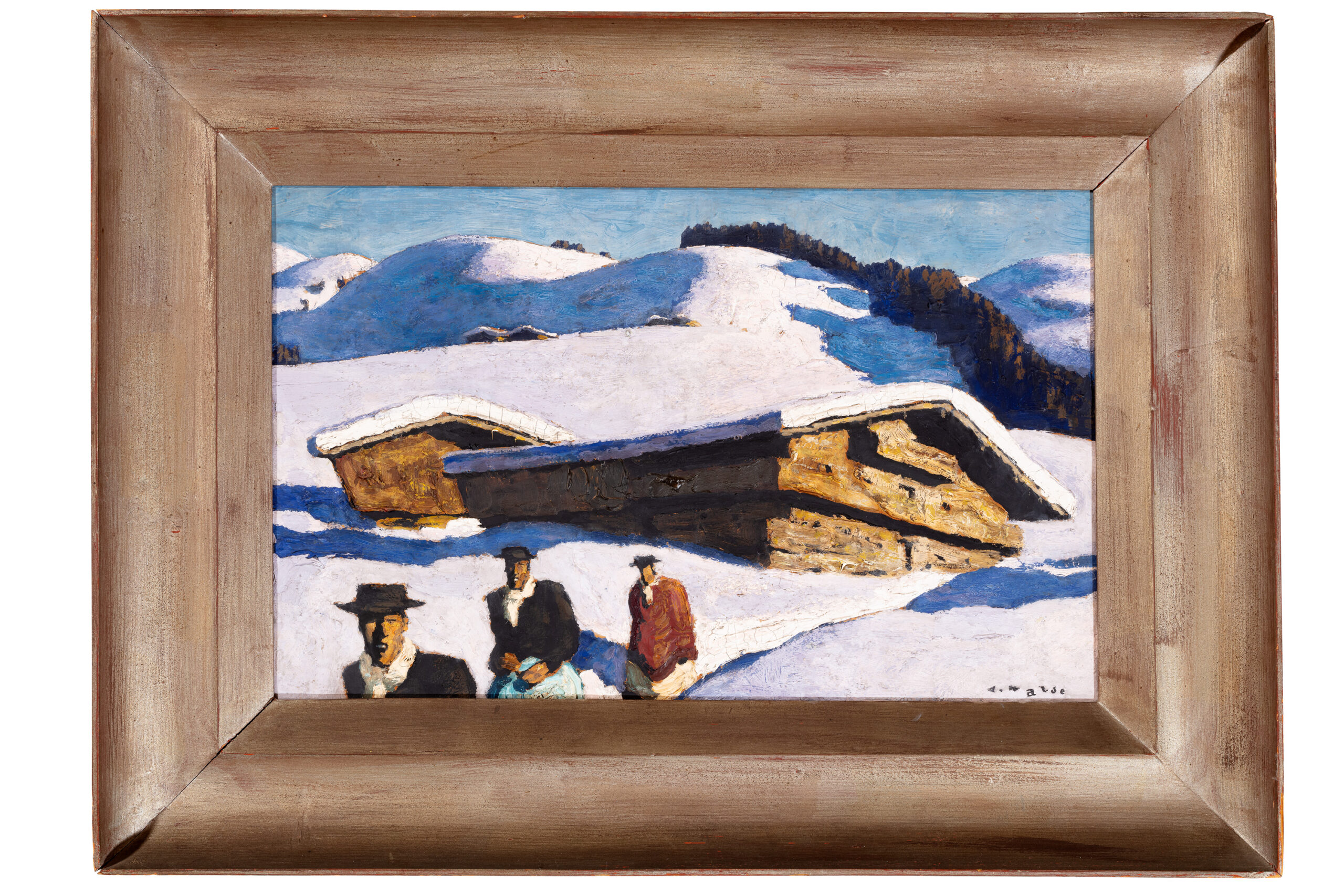 Alfons Walde rahmte seine Werke in selbst entworfene Hohlkehlrahmen. Es handelt sich dabei um einen breiteren Holzrahmen mit einer bestimmten Hohlkehle. Einige Werke befinden sich noch im Original-Künstlerrahmen. Es gibt jedoch auch Werke, bei denen der Rahmen im Laufe der Zeit gewechselt wurde und verloren ging. In diesem Fall wird dieser bei uns im Kunsthandel von einem Fachmann originalgetreu angefertigt.