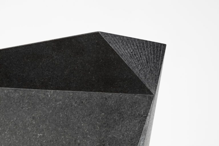 Osamu Nakajima arbeitete vorwiegend mit dem Steinmaterial Granit, aber auch Lava, Serpentin und weiteren Materialkombinationen. Die Bearbeitung des Materials dauerte oft Wochen bis hin zu Monaten. Der Schliff wurde exakt und mit Gefühl ausgeführt. Das Ergebnis waren geometrische Figuren mit messerscharfen Graten und linearen Strukturen. Je nach Betrachtungswinkel und Sonneneinstrahlung wirken die Skulpturen unterschiedlich. Seine Werke strahlen eine Klarheit und ästhetische Vollkommenheit aus.