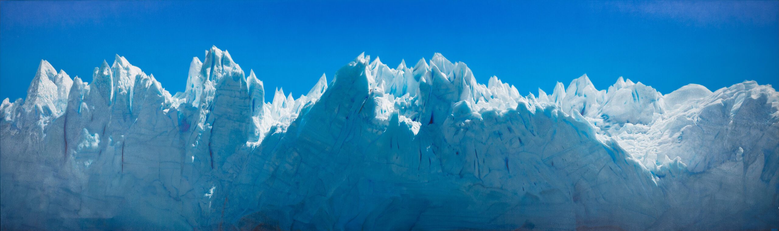 Mit einer beeindruckenden Länge von fünf Metern, rauben einem die blau schimmernden Eismassen den Atem. Das Bild wirkt fotorealistisch, ist jedoch in zeitintensiver Technik mit Ölfarbe auf Leinwand gemalt.